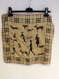 BURBERRY DOG WALKING PRINT SILK SQUARE NECK SCARF