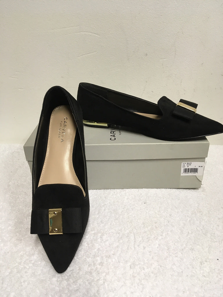 BRAND NEW CARVELA BLACK SUEDETTE BOW TRIM FLATS SIZE 5/38