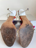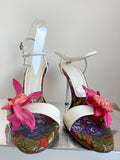Italian Casadei White Patent Leather Flower Trim Strappy Sandals Size 5.5 /38.5