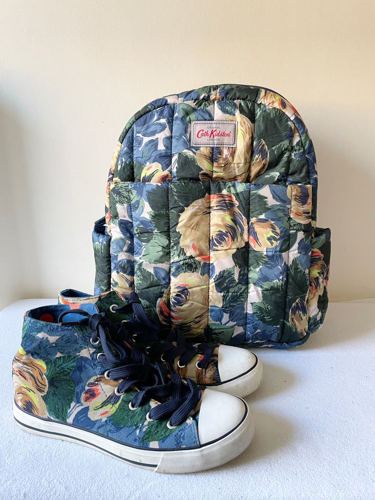 CATH KIDSTON FLORAL PRINT HIGH TOP PLIMSOLS & MATCHING BACK PACK