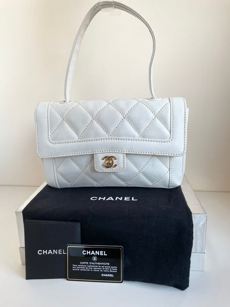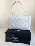 CHANEL WHITE LEATHER QUILTED “WILD STITCH” TOP HANDLE/ SHOULDER BAG