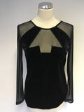 BRAND NEW COAST BLACK VELVET & SEMI SHEER NET LONG SLEEVE TOP SIZE 14