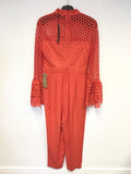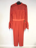 BRAND NEW COAST RED LACE TOP LONG SLEEVE BELL CUFF JUMPSUIT SIZE 12