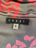 COAST 100% SILK GREY & RED FLORAL PRINT 3/4 SLEEVE