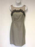 COAST BEIGE WOOL & ORGANZA SILK TOP SLEEVELESS PENCIL DRESS SIZE 8