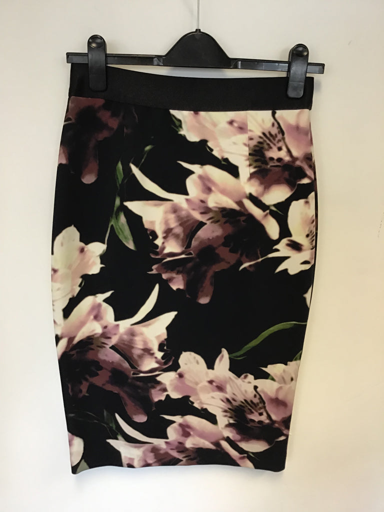 COAST BLACK FLORAL PRINT PENCIL SKIRT SIZE 10