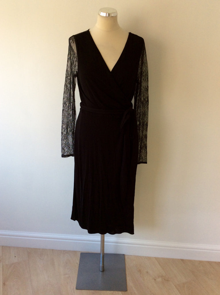 COAST BLACK LACE TRIM WRAP DRESS SIZE 16