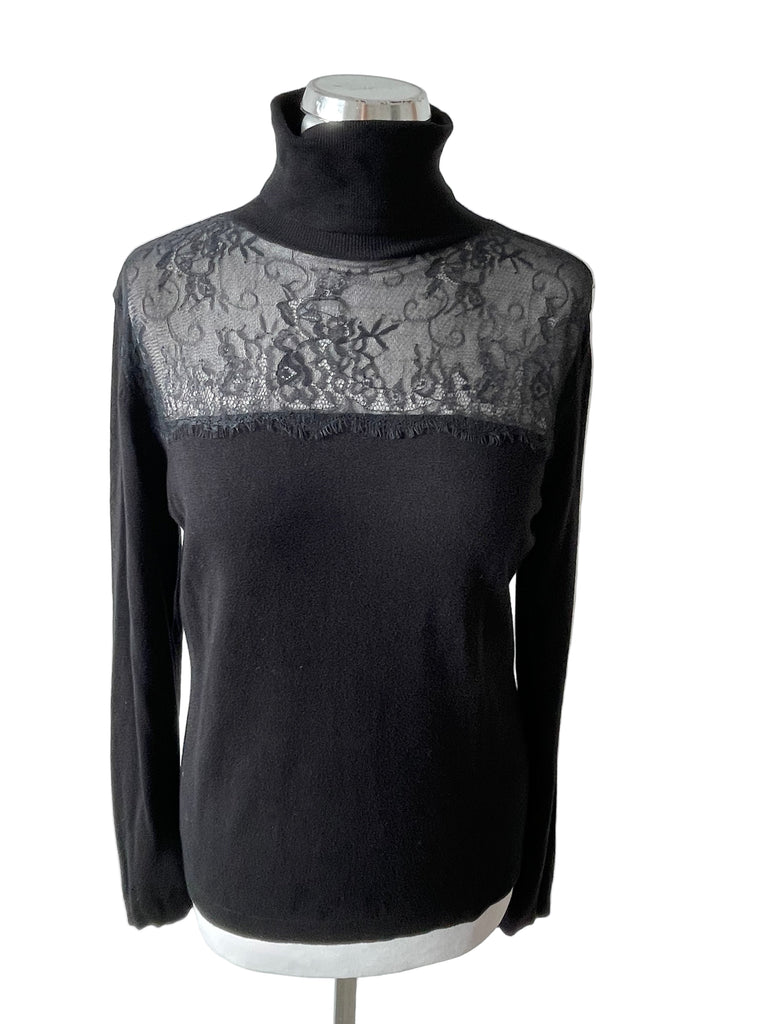 COAST BLACK POLO NECK LACE FRONT JUMPER SIZE M