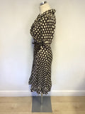COAST BROWN & CREAM PRINT SILK SHORT SLEEVE WRAP AROUND DRESS SIZE 8