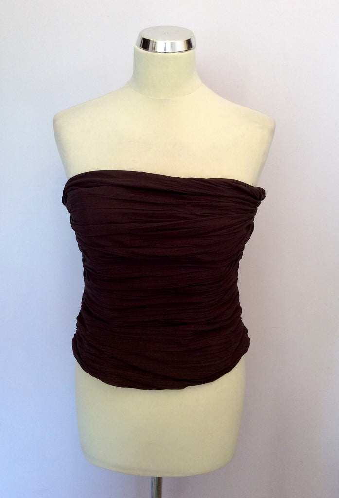 COAST BROWN PLEATED BUSTIER SILK TOP SIZE 14