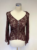COAST BURGUNDY LACE 3/4 SLEEVE FLUTED CUFF TOP SIZE 12