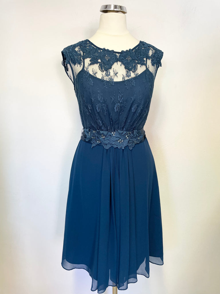 COAST TEAL LACE BODICE & JEWEL BELT SLEEVELESS FIT & FLARE OCCASION DRESS SIZE 6
