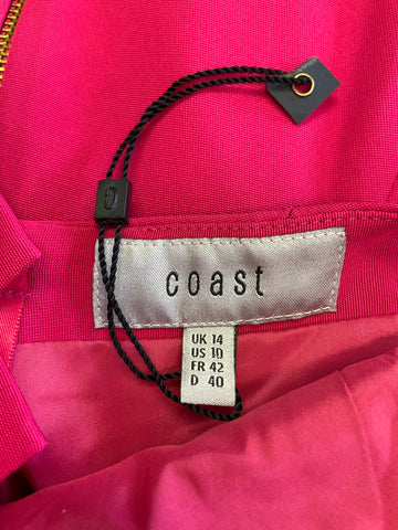 BRAND NEW COAST GINA CORAL/ORANGE COLD SHOULDER PENCIL DRESS SIZE 14