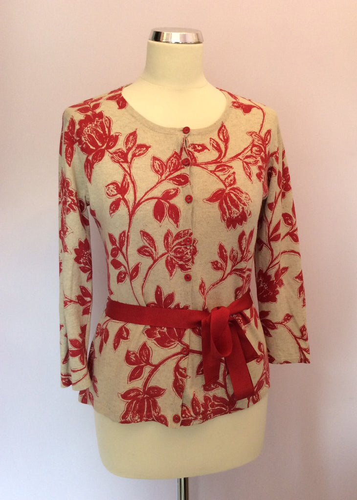 Country Casuals Beige & Red Floral Print Belted Cardigan Size S Petite