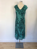 COUNTRY CASUALS GREEN & VELVET EMBELISHED FLORAL PRINT DRESS SIZE 14