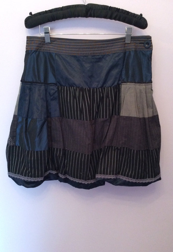 Desigual Blues, Black & Greys Prints Bubble Hem Skirt Size 40 UK 12