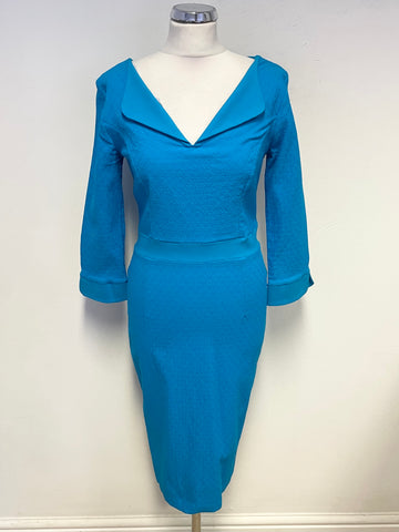 DIVA CATWALK TURQUOISE 3/4 SLEEVED BODYCON DRESS SIZE 10/12