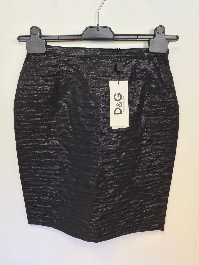 BRAND NEW DOLCE & GABBANA BLACK CRINKLE STYLE WITH SHIMMER MINI SKIRT SIZE 40 UK 10