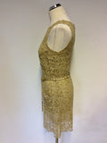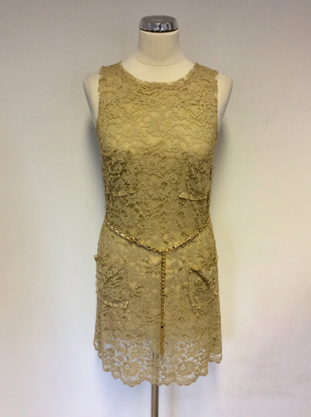 DOLCE & GABBANA CAMEL BEIGE LACE & SILK CHAIN BELT DRESS SIZE 38 UK 6/8