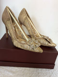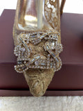 BRAND NEW DUNE GOLD LACE WITH DIAMANTÉ JEWEL TRIM HEELS SIZE 3.5/36
