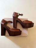 BRAND NEW DUNE TAN LEATHER PEEPTOE PLATFORM HEELS