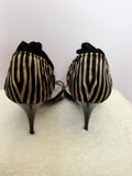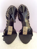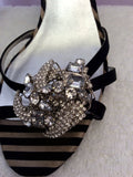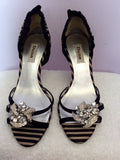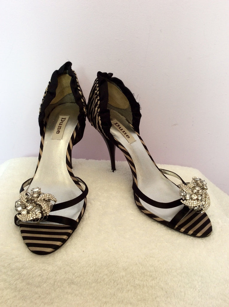 Dune Beige & Black Satin Stripe Diamanté Trim Heels Size 5/38