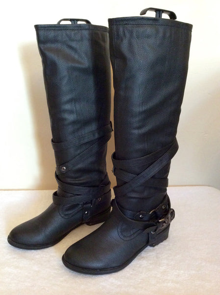 Dune Black Knee High Buckle Trim Boots Size 5/38