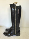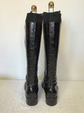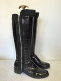 DUNE BLACK PATENT LEATHER & SUEDE ZIP TRIM KNEE LENGTH BOOTS SIZE 5/38