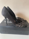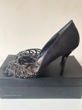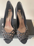 DUNE BLACK SATIN RHINESTONE TRIM OPEN TOE HEELS SIZE 8/42