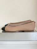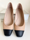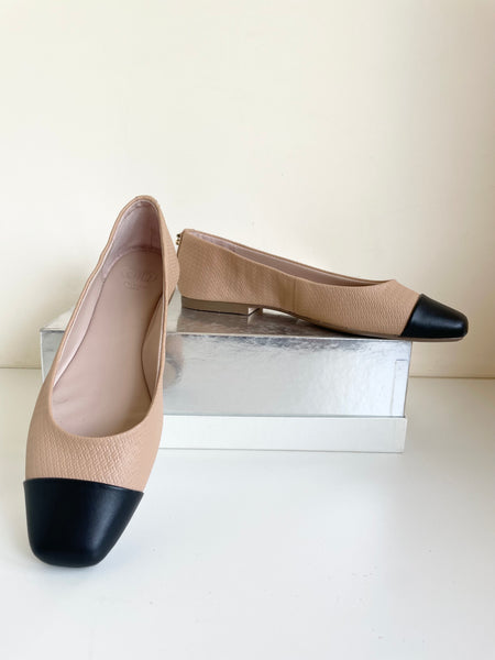 DUNE CAMEL & BLACK TOE LEATHER FLATS SIZE 5/38