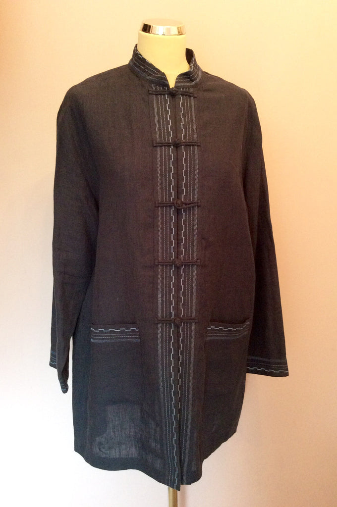 East Dark Blue Embroidered Long Linen Jacket Size 12