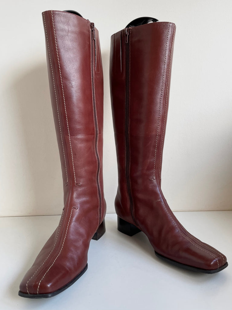 ECCO CHESTNUT BROWN LEATHER KNEE LENGTH LOW HEEL BOOTS SIZE 5/38