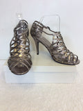 EMILIO LUCAX PEWTER STRAPPY CAGE HEEL SANDALS SIZE 8/42
