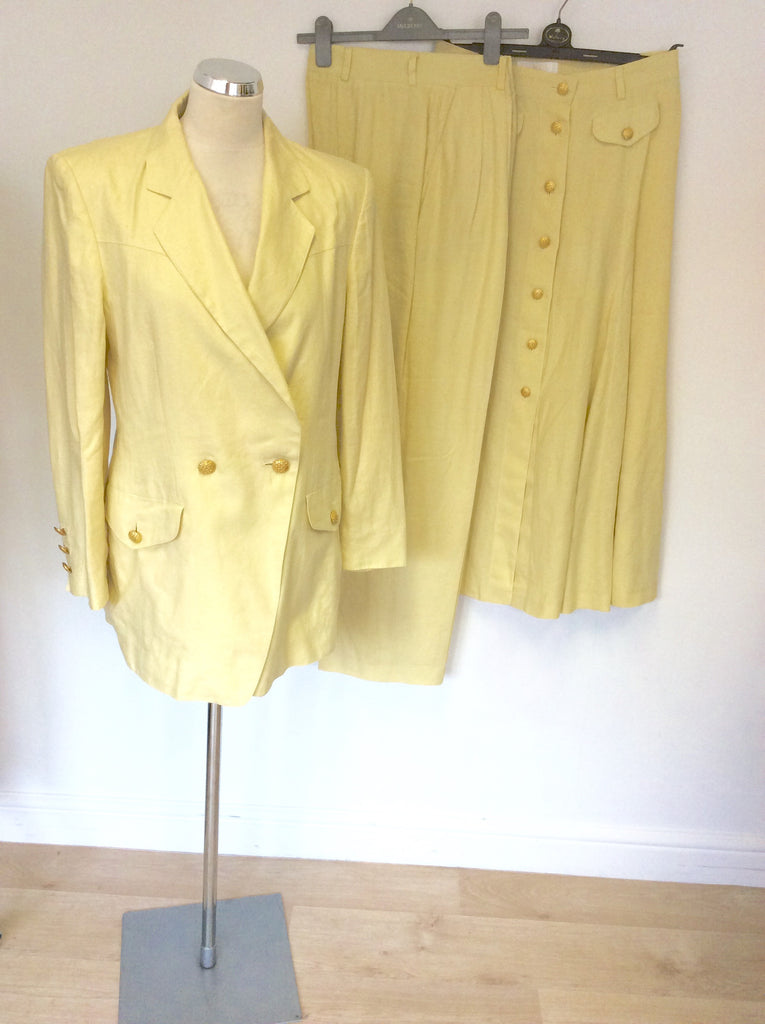 VINTAGE ESCADA MARGARETHA LEY LEMON LINEN JACKET,SKIRT & TROUSERS SUIT