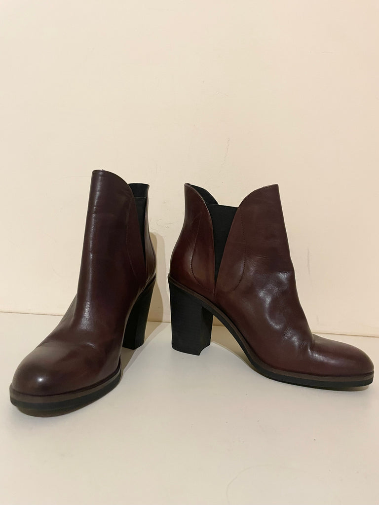 ESPRIT OXBLOOD LEATHER ANKLE BOOTS SIZE 7/40