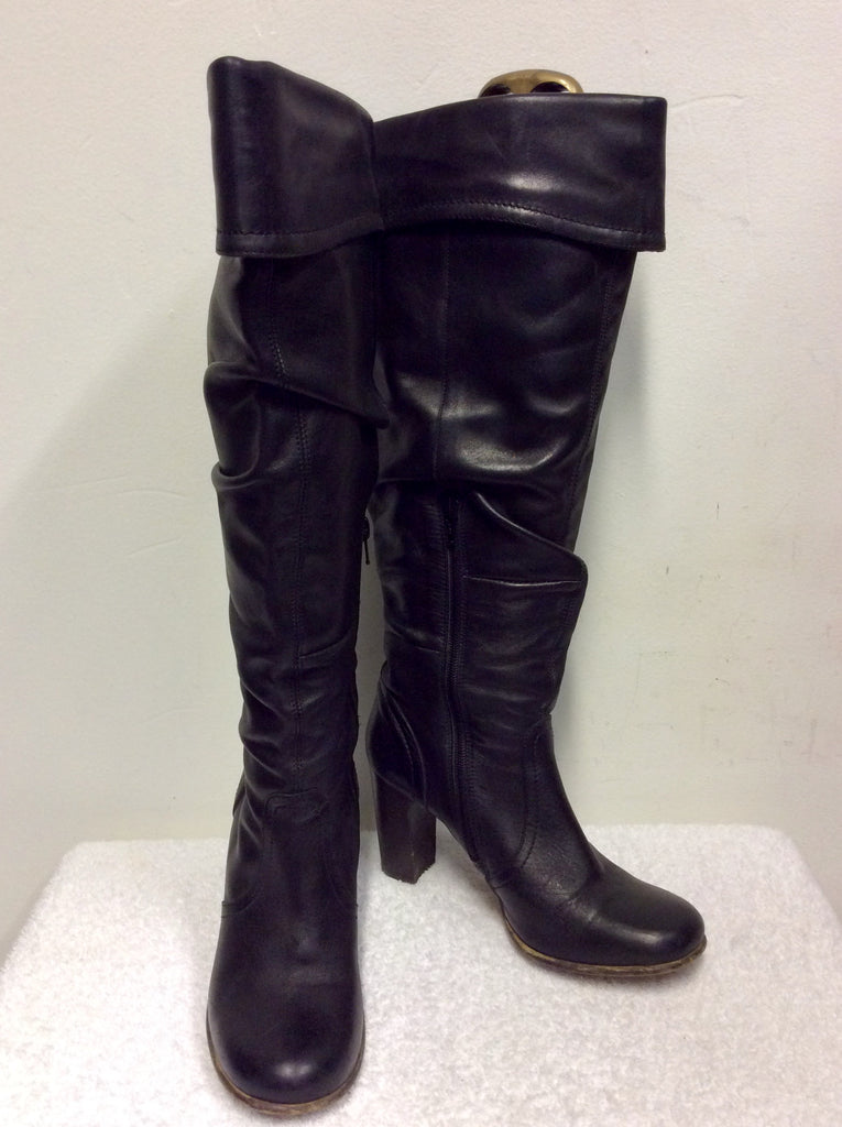 FAITH BLACK LEATHER KNEE LENGTH BOOTS SIZE 6/39