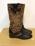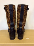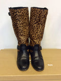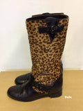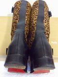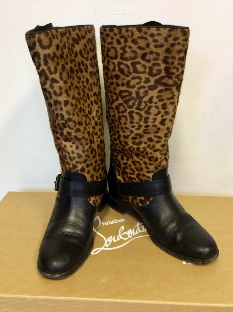 CHRISTIAN LOUBOUTIN BLACK LEATHER & LEOPARD PRINT PONYSKIN BIKER BOOOTS SIZE 7/40