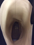 LEATHER TRIM TO BACK OF BOOT AND BUCKLE TRIM TO TOP