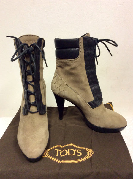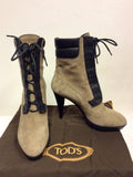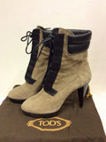 NEW TODS BROWN SUEDE & LEATHER LACE UP ANKLE BOOTS SIZE 3.5/36