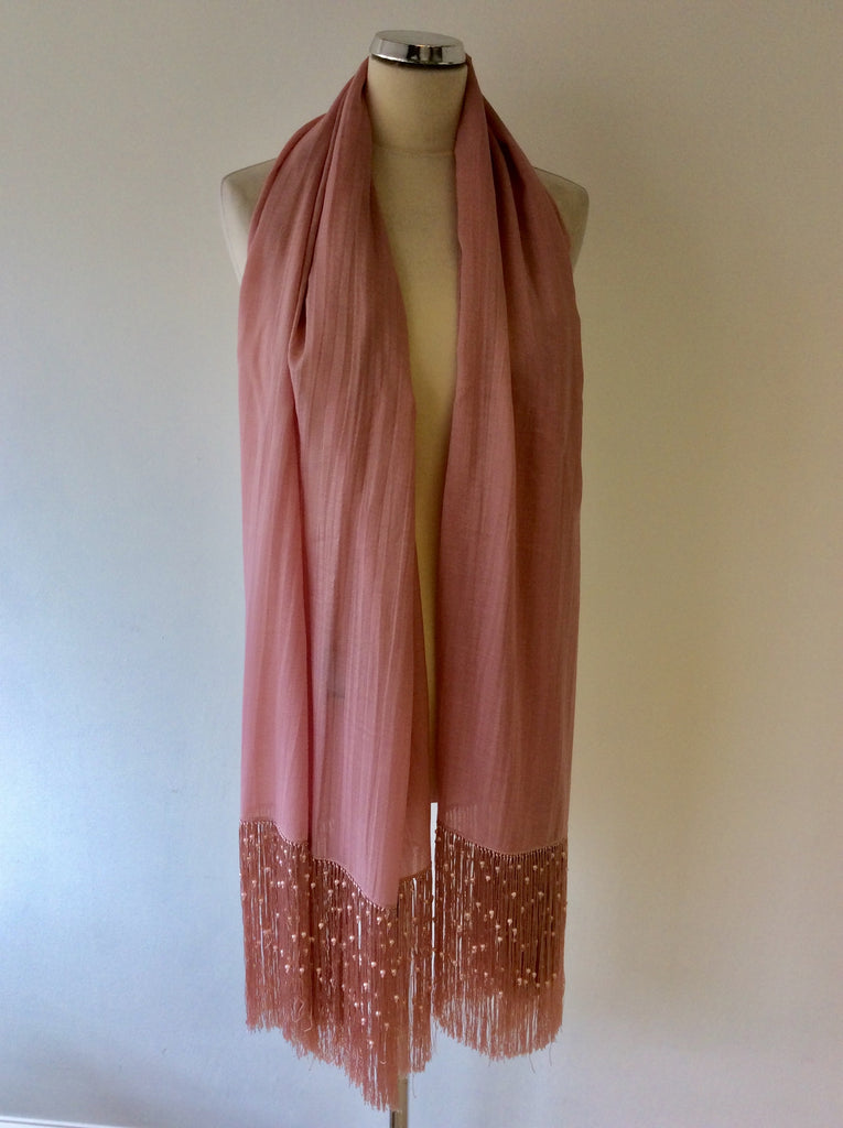 BRAND NEW FENN WRIGHT MANSON PINK SILK & WOOL PEARL FRINGED WRAP