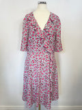 FENN WRIGHT MANSON PALE GREY & PINK PRINT SHORT SLEEVE DRESS SIZE 12