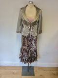 FENN WRIGHT MANSON SILVER,PINK & BROWN SILK BLEND PRINT DRESS & JACKET SIZE 12