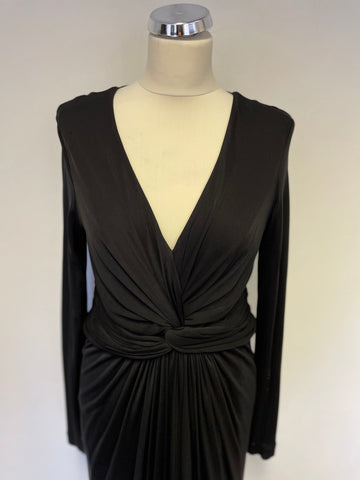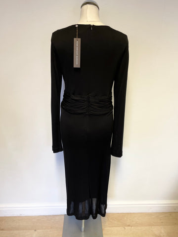 BRAND NEW FENN WRIGHT MANSON BLACK DRAPED KNOT DETAIL LONG SLEEVE MIDI DRESS SIZE 14