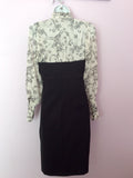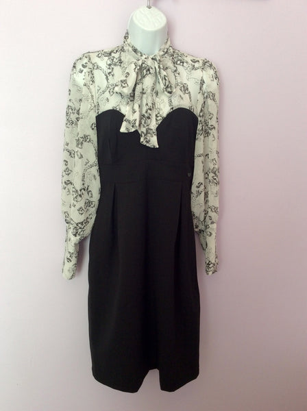 Firetrap Tie Print Blouse Top Long Sleeve Dark Grey Pencil Dress Size XS