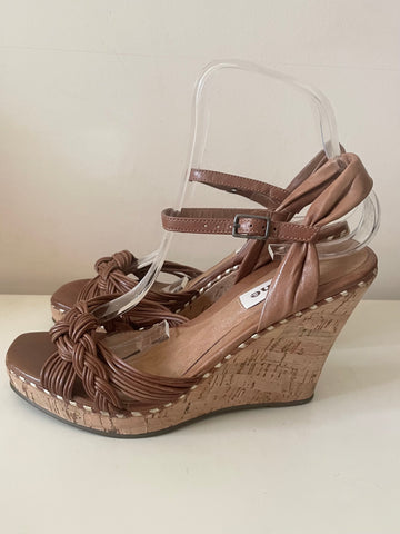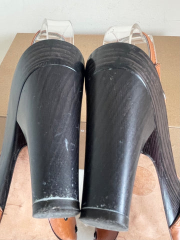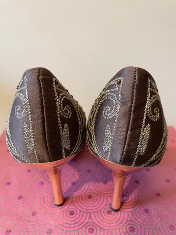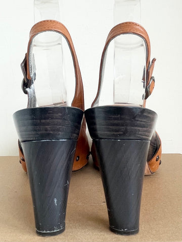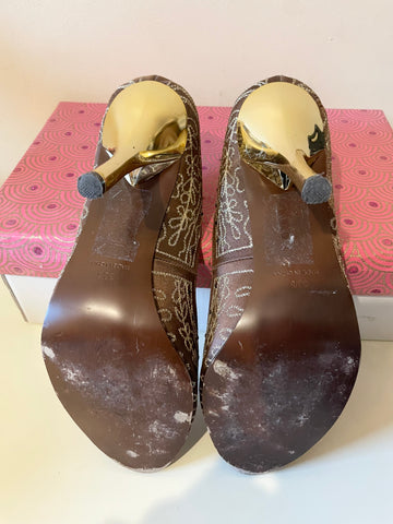 KAREN MILLEN BROWN BUCKLE TRIM LEATHER HEELS SIZE 3.5/36