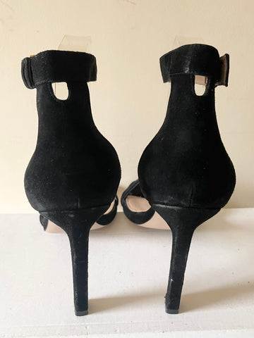 KAREN MILLEN BLACK PEEPTOE BUCKLE TRIM LEATHER HEELS SIZE 3.5/36