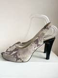 RUSSELL & BROMLEY CREAM SNAKESKIN LEATHER PEEPTOE SLINGBACK HEEL SANDALS