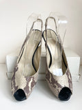RUSSELL & BROMLEY CREAM SNAKESKIN LEATHER PEEPTOE SLINGBACK HEEL SANDALS SIZE 6/39