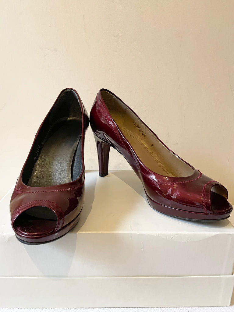 STUART WEITZMAN FOR RUSSELL & BROMLEY DEEP RED/WINE PATENT LEATHER PEEPTOE HEELS SIZE 6/39
