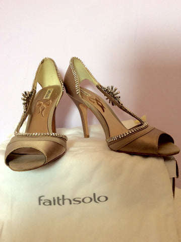 Faith Solo Taupe Diamanté Trim Satin Heels